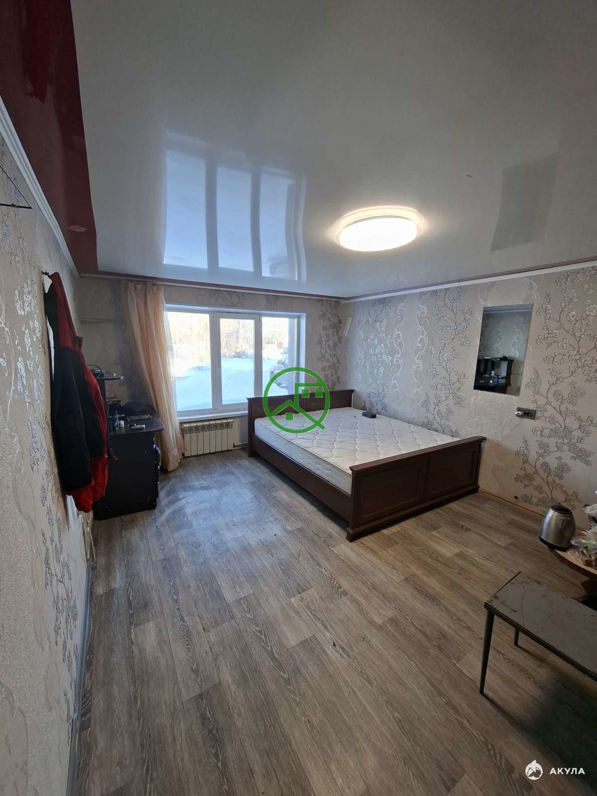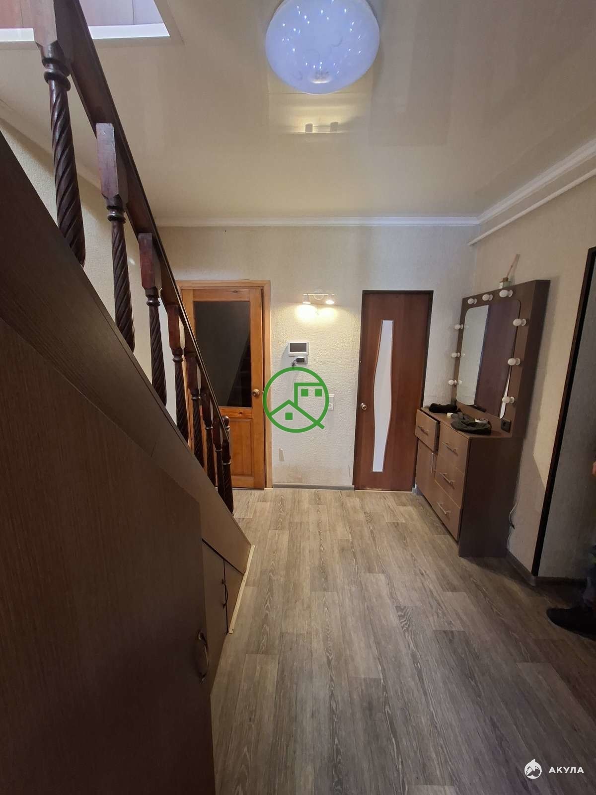 Дом двухэтажный с общей площадью 140 квадратных метров. В доме проведён газ, вода, канализация.На первом этаже располагается гостиная, спальня, туалет, кухня, деревянная лестница на второй этаж. Из кухни также есть выход на летнюю кухню, баню. На втором этаже располагается три изолированные комнаты, кладовка.Во всем доме пластиковые окна, натяжные потолки, новые двери в комнаты.