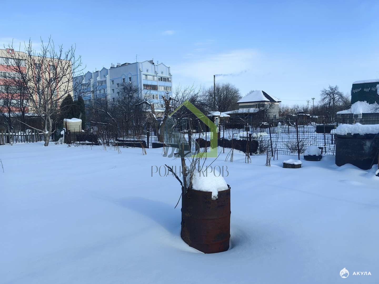 Поставлен на кадастровый учет. На участке два плодоносящих грецких ореха, две яблони, груша, малина, две вишни, черная смородина, клубника, виноград, бак для воды.
